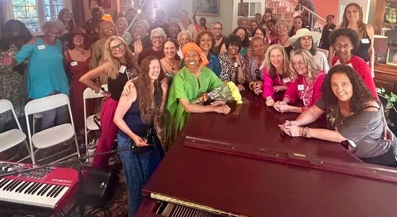 Rickie Byars knows how to get folks to singing! Â She is one of our Artists in Residence, and has composed a book of music used widely in spiritual communities. Whether you are a seasoned musician/vocalist or simply one of the many folks who just love to sing, you have a place here. Our environment is deliberately inclusive and the talents of amazing artists are heard weekly.