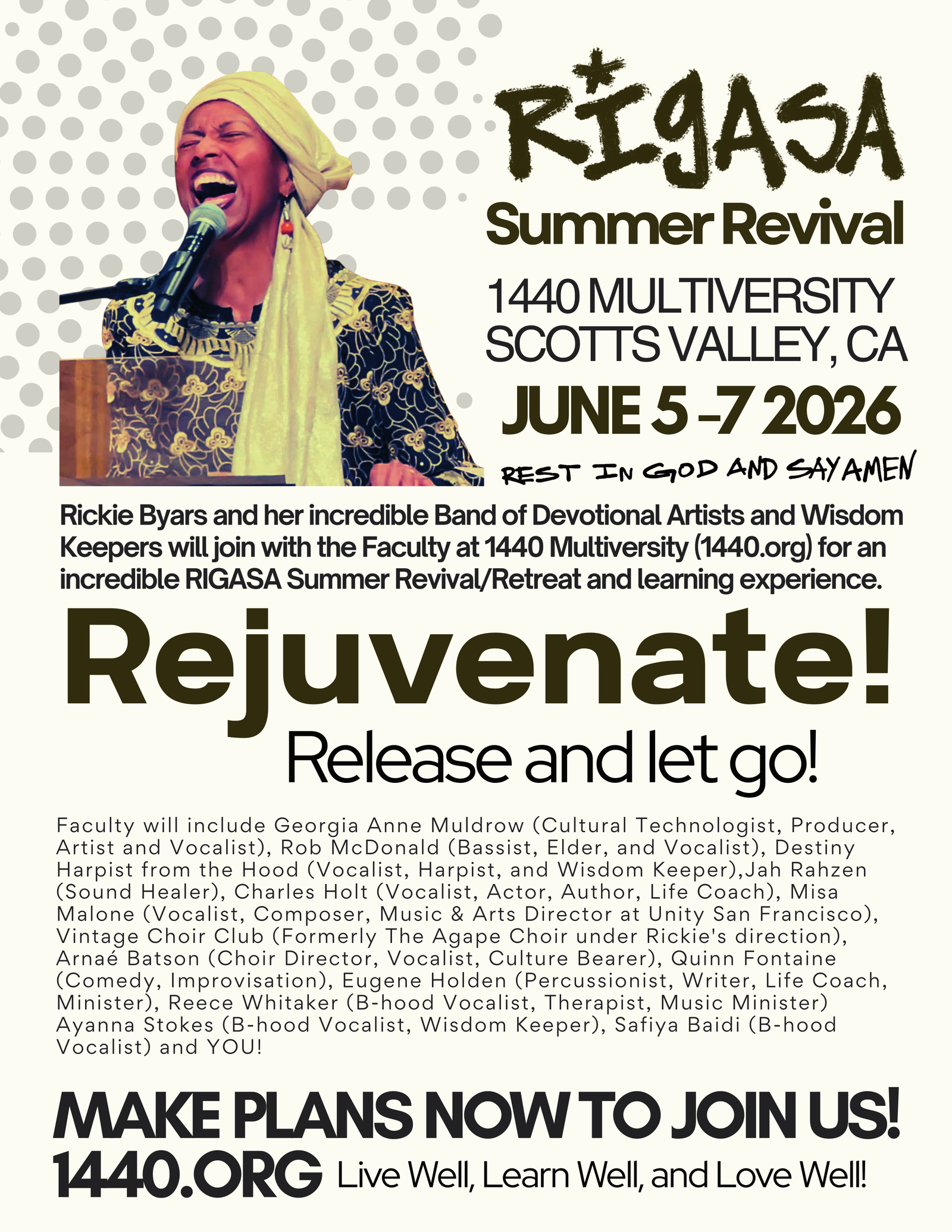 Kuumba In Motion seeks meaningful partnerships with cultural institutions, and Artists who share our commitment to community empowerment through creativity. Kuumba is partnering with 1440 Multiversity in Scotts Valley, CA (1440.org) who will host the Annual RIGASA Revival June 5 - 7, 2026. We share in 1440's commitment to live well, love well. Consider partnering with our Arts non-profit; you can host a B-Hood Pop Up at your location, co-sponsor a Devotional series, or provide resources that amplify our mission. Let’s combine our strengths to deepen our community reach and provide sustainable wisdom.